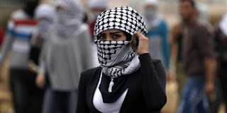 Em Árabe, no entanto, a conversa é outra, e a PNN até inclui, em destaque, fotos de mulheres árabes "valentemente" brandindo as suas facas:
