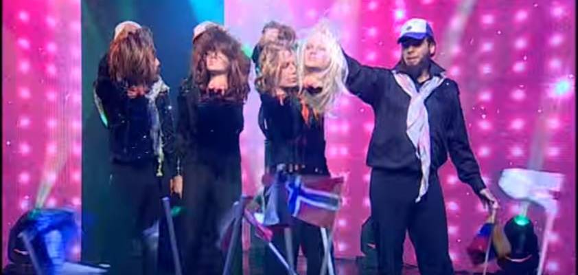 Israel, mais que uma vez vitorioso no popular concurso, não ganhou a edição de ontem. Mas não perdeu o bom-humor, e os humoristas mais populares do país, no programa Eretz Nehederet do Canal 2, apresentaram um quadro alusivo ao concurso.