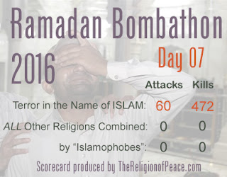 Este ano, volvidos apenas 7 dias de Ramadão, já lá vão 60 ataques e 472 mortos. Para não falar dos feridos e estropiados. ISTO É O ISLÃO!
