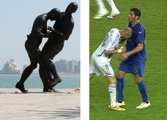 Da autoria do escultor franco-argelino Adel Abdessemed, a estátua celebratória da cabeçada de Zinedine Zidane em Marco Materazzi, foi adquirida pelo Qatar, e deveria ser exposta no Museu Árabe de Arte Moderna, em Doha, numa exposição intitulada "A Idade de Ouro"...