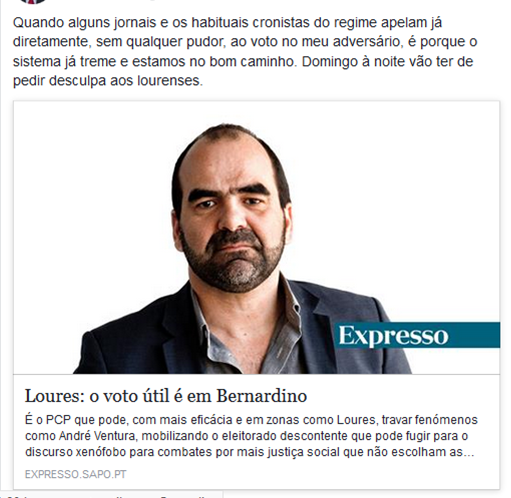Daniel Oliveira, conhecido extrema-esquerdista, cronista do regime e defensor entusiasta da islamização da Europa, não tem pudor em usar a sua coluna no Expresso para apelar ao voto no Partido Comunista, contra André Ventura.