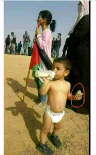 O Hamas continua essa produção há semanas, usando os árabes em Gaza como balas de canhão. Desde então, tem havido a falsa alegação "palestina", de que uma bebé de oito meses chamado Lila Randur, que foi trazido para a cena dos tumultos, morreu de inalação de gás lacrimogéneo. Além disso, o Hamas recusou-se a permitir a entrada em Gaza de camiões israelitas com suprimentos médicos. Para qual propósito? Para aumentar a contagem dos mortos?