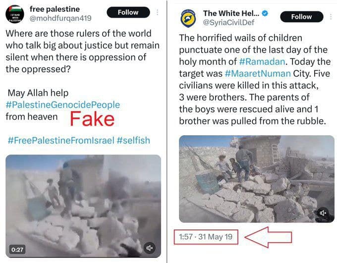 Mais crianças mortas, para alimentar o velho mito antissemita de que "os judeus matam crianças". Só que a foto foi publicada em 2019 e refere-se a um ataque terrorista islâmico de uma seita rival, no último dia do Ramadão, que vitimou 5 pessoas: